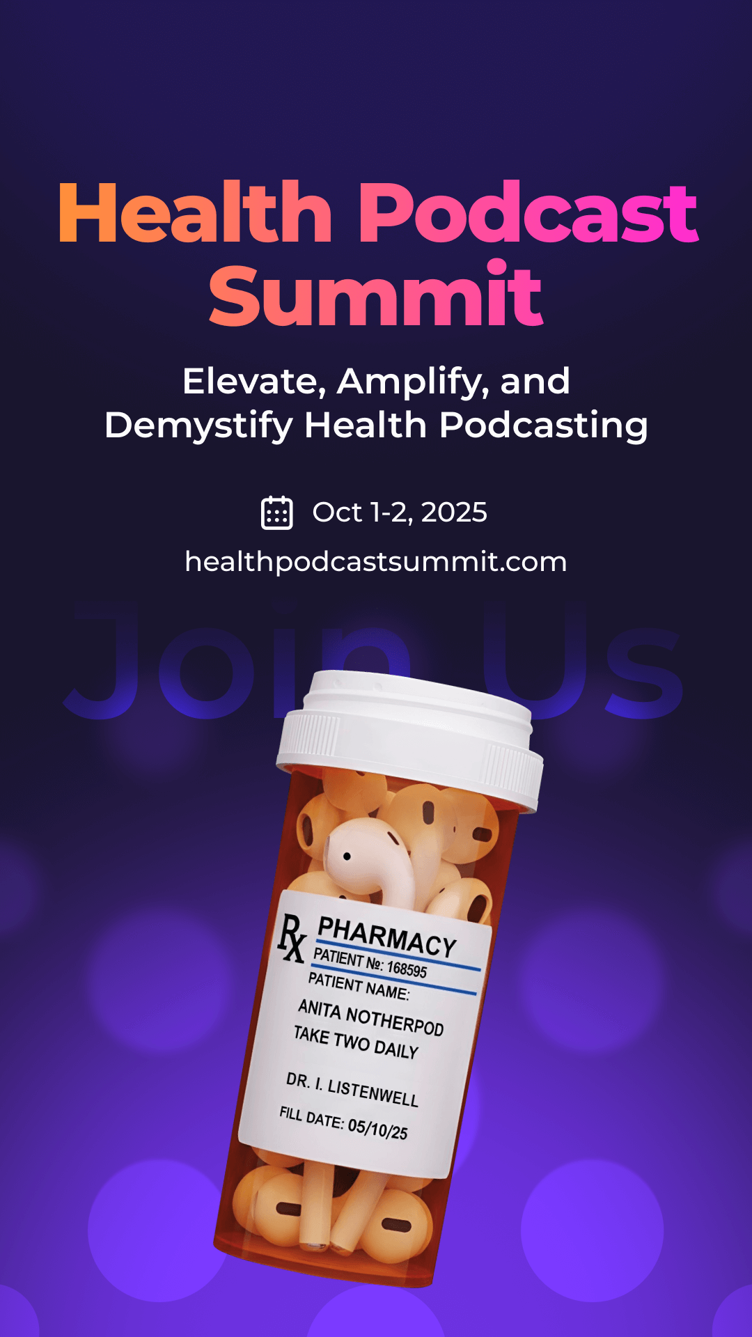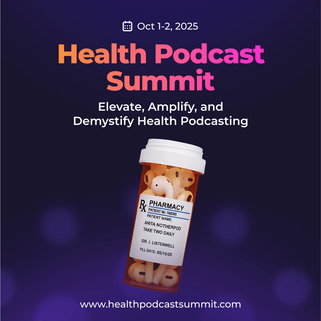 The first summit dedicated to evidence-based health podcasting. Join 40 industry leaders establishing the standards for audio content that actually reaches and helps people. Discover how healthcare organizations, clinicians, and patient advocates are using podcasts to build trust where it matters most: in earbuds during commutes, workouts, and the moments people actually listen.